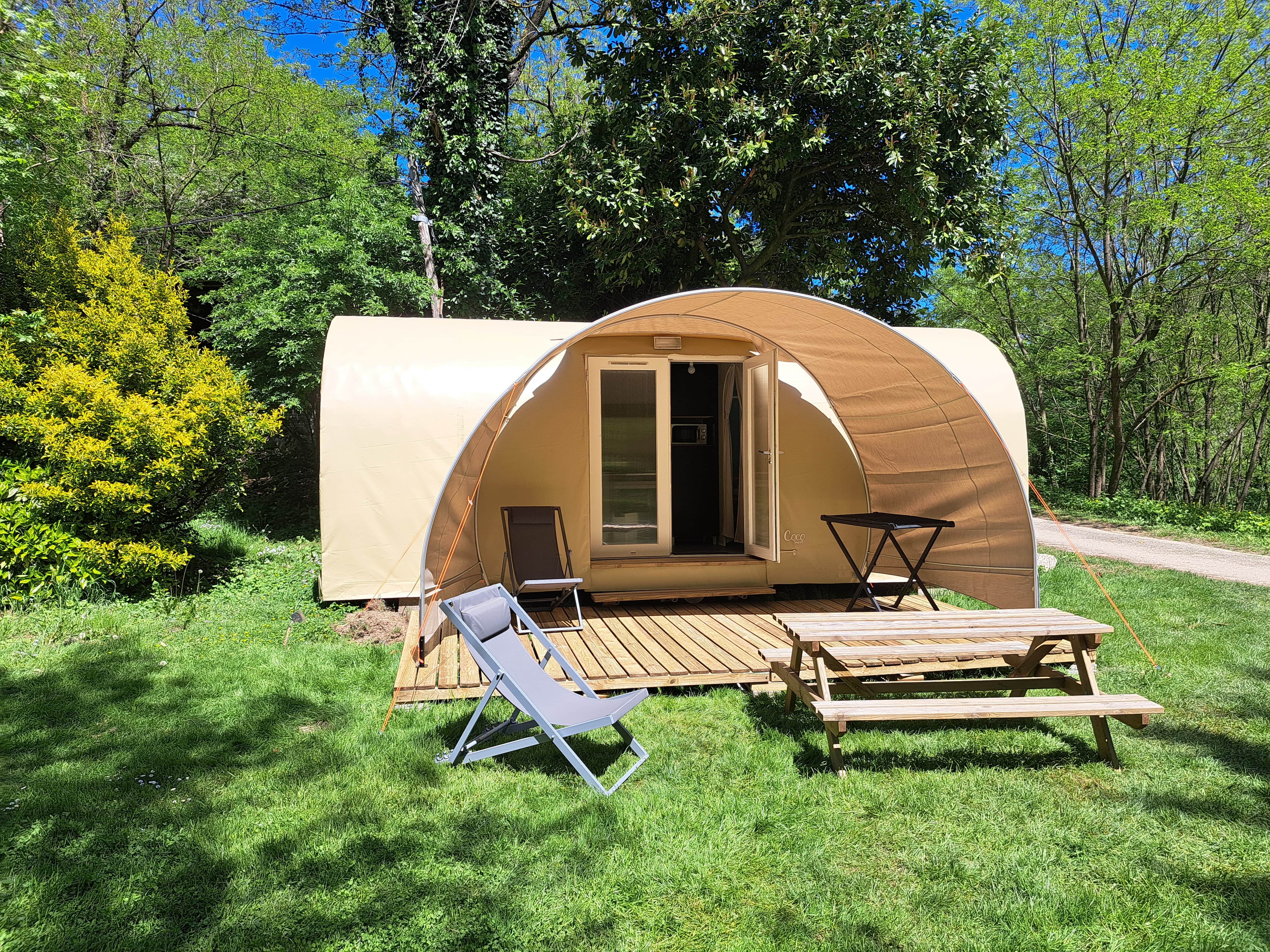 - peu d'emplacements mais tous très vastes, des hébergements "verts" éco-conçus, en toile ou bois essentiellement et sans climatisation,